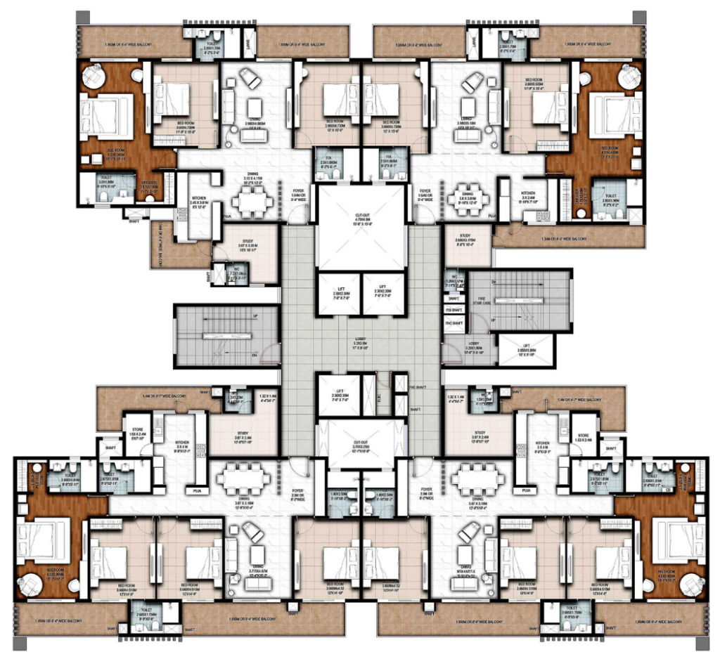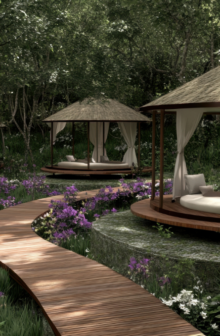 Fab-Luxe offers expansive central greens, nature trails, and thoughtfully themed gardens—herbal, flowering, butterfly, and reflexology. Complemented by an amphitheatre, serene water features and shaded cabanas, the outdoor environment encourages relaxation, exploration, and community bonding.